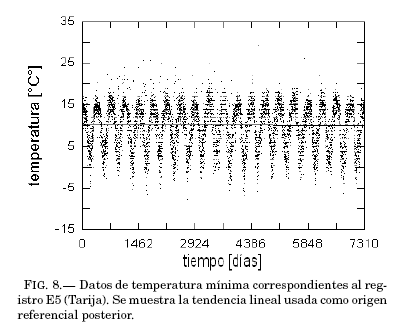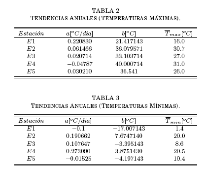 Por otra parte, la comparacion entre las dos ultimas columnas de las tablas 1 y 2, es decir, entre el comienzo de la tendencia con el valor medio aproximado de la temperatura en cada caso, arroja diferencias notables (de entre 5 y 18 grados) implicando ya la presencia de estructuras extremas para cada uno de los puntos anuales.