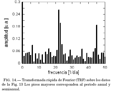 No todos los perıodos son cualitativamente significativos, ni climaticamente importantes. Así, como las altas temperaturas son propias del verano y las bajas son características del invierno, los períodos P3 y P5 corresponden, obviamente, a ese patron anual y semianual; los perıodos P2 y P4, en cambio, tienen interpretaciones menos evidentes, pero, probablemente, reflejan oscilaciones estacionales menores.