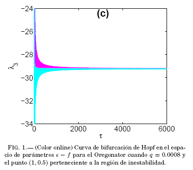 De acuerdo al analisis de estabilidad lineal de la variedad de sincronizacion correspondiente al sistema compuesto O1O2, C pasa a ser un parametro estructural a traves del cual una perturbación genera una asimetrıa que restituye el término difusivo. Lo anterior se refleja en la dinamica de la perturbacion transversal a dicha variedad (9), cuyo máximo exponente transversal de Lyapunov,