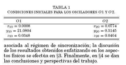 La integracion numérica de las ecuaciones diferenciales se llevo a cabo empleando el método de Runge-Kutta de cuarto orden con paso de integracion de 0.01 y tolerancias absoluta y relativa, ambas, de 10-10, a partir de la cuales se obtuvieron las trayectorias en el espacio de fases, las series temporales y, con base en estas, el error medio de sincronizacion.