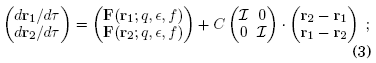 El sistema formado por los osciladores idénticos O1 y O2 acoplados difusivamente tiene dimensión 6 y está representado por las ecuaciones cinética