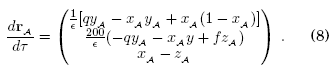 Una vez que los osciladores O1 y O2 acoplados y descritos por el sistema de ecuaciones (3) llegan a sincronizar completamente constituyen un sistema compuesto, O1O2, de dimensión 3, en el que la magnitud de las variables din´amicas son las mismas a cualquier tiempo en uno y otro reactor y pertenecen a la variedad de sincronización periódica cuya dinámica está descrita por las ecuaciones diferenciales del Oregonator evaluadas en A:
