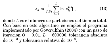 Para el calculo de los exponentes de Lyapunov se empleo el algoritmo propuesto por Wolf et al. (1985), el cual se basa en el conjunto ortonormal