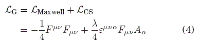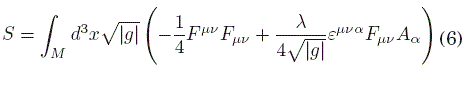 La aplicación de la prescripción de acoplamiento mínimo a la lagrangiana de Maxwell-Chern-Simons (4) resulta en la acción