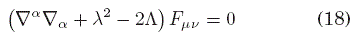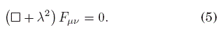de donde es manifiesto el efecto de la constante cosmológica sobre la masa del campo electromagnético en esta teoría, siempre que λ2≥ 2Λ. La masa del campo entonces está dada por