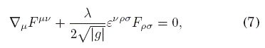Sin embargo, la acción (1) es sólo una de las muchas posibilidades de combinar al campo A y derivadas de sus componentes en una forma invariante bajo transformaciones generales de coordenadas y bajo transformaciones de calibre. Por ejemplo, uno podría introducir cualquier término con funciones de la forma f(FμνFμν), y seguiría conservando la invariancia frente a transformaciones ge-nerales de coordenadas y frente a transformaciones de calibre. Entonces, uno debe buscar alguna motivación extra para introducir términos a la acción y obtener variantes de la teoría.