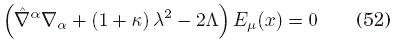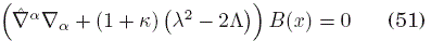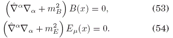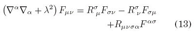 de donde vemos que, para un espacio tiempo plano, se recupera la ecuación (5). Evidentemente, la ecuación (13) es la generalización de la ecuación de Klein-Gordon que Deser et al. , [1982] hallaron en su trabajo.