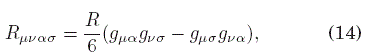 Tomemos nuevamente el caso del espacio tiempo descrito por la curvatura escalar constante R=6Λ. Procediendo de manera similar como en la sección 2.1, se tiene que