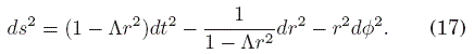 con lo que, de la ecuación de campo de Einstein con constante cosmológica