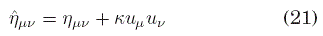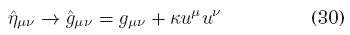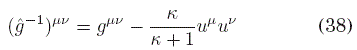 donde la última igualdad puede obtenerse usando el sistema de coordenadas co-móvil al medio, donde uμ=(1,0,0). De modo que (40) se escribe