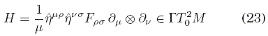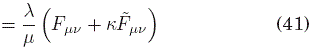 más la identidad de Bianchi (3) por la forma de la definición de F. Por ejemplo, en el caso de cuatro dimensiones, en el sistema de referencia co-móvil al medio (i.e. en reposo respecto del mismo) la ecuación (24) se reduce a