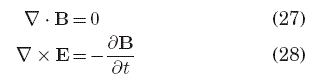 mientras que las leyes de Àmpere y Gauss del campo magnético, que provienen de la identidad de Bianchi (3), tienen la misma forma que en el caso de la ausencia de un medio,