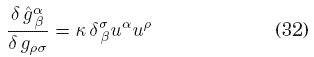 necesita inevitablemente de la métrica para tener un índice arriba y el otro abajo, dado que uμ se definió naturalmente como un vector, y no como una 1-forma. Desde el punto de vista de las derivadas funcionales, tenemos que