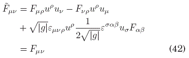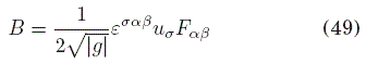 Ahora, invocando el resultado de la ecuación (42), y definiendo el campo magnético asociado al tensor de campo Fμν