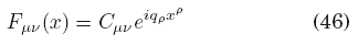 donde Cμν es un tensor constante y qρ es un 3-vector de onda a determinar. Introduciendo esta expresión en la ecuación (45), se obtiene la siguiente relación de dispersión