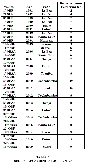 1.3 LA OLIMPIADA BOLIVIANA DE FÍSICA, ASTRONOMÍA Y ASTROFÍSICA (OBFAA) Y LA OLIMPIADA CIENTÍFICA ESTUDIANTIL PLURINACIONAL BOLIVIANA (OCEPB)