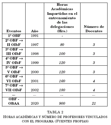 The OBF and OBAA programs started in 1997 and 2006, respectively. Since then, many generations of students have been motivated in public and private educational units in Bolivia. At the start only senior students were invited to participate, but later younger students were targeted and the invitation was extended to 6th grade primary school children and onwards, involving a total of seven categories at a national level. The majority of public and private universities have started nourishing themselves with the talent of those ex-olympic students, as well as, several foreign universities.