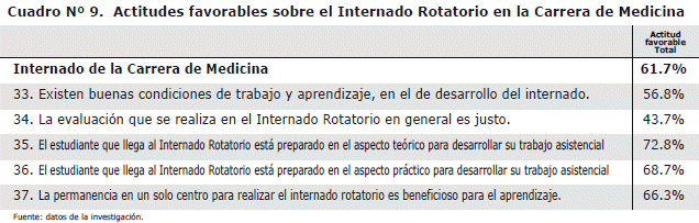 b. Existe un 61.7% de actitud favorable para el internado.
