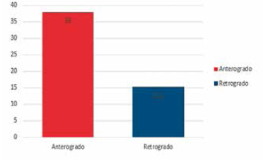 RESULTADOS: Comparando ambas técnicas en el postoperatorio una vez consolidada la fractura mediante la escala DASH, la encuestada realizada a los pacientes mostró mayor discapacidad en el grupo anterógrado con puntuación de 38, el grupo retrogrado presento una puntuación de 15,2. Significancia asintótica 0,350 > 0,005.