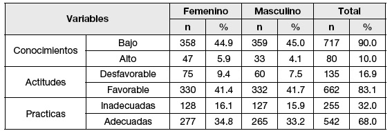 Para determinar los conocimientos, actitudes y prácticas sobre alimentación saludable de los participantes y clasificarlos en conocimientos altos o bajos, actitudes favorables o desfavorables y practicas inadecuadas o adecuadas, se desarrolló una encuesta siguiendo los criterios propuestos por la Organización de las Naciones Unidas para la Agricultura y Alimentación (FAO, por sus siglas en inglés) en su Guía para evaluar conocimientos, actitudes y prácticas en nutrición9.