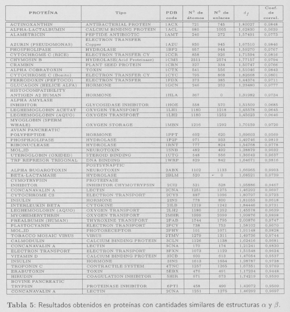 En la Tabla 5 se presentan los resultados obtenidos para algunas de las proteínas estudiadas, que en este caso contienen cantidades similares de estructuras α y β.
