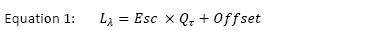 Where L λ is the radiance in units of W/m2•sr•μm (output spectral radiance), Q τ is the digital number (DN) value of the image, Esc is the scale factor for the TIRS thermal band (0,00341802), and the Offset is the adjustment value for the TIRS thermal band (149).