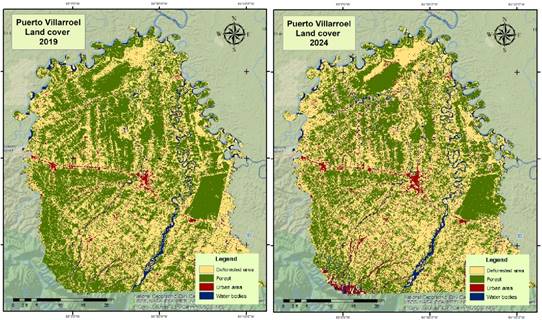 Figure 2. Land cover classification for the Municipality of Puerto Villarroel for the first and last year of the study (2019 and 2024).