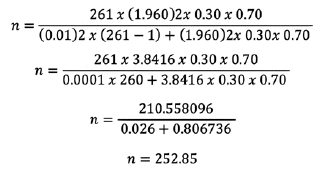 Según resultado la muestra está compuesta por 253 expedientes clínicos. El Teorema del límite central, señala que una muestra con más de 100 datos (documentos) presenta una distribución normal.27
