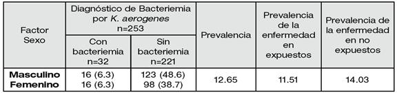 La prevalencia de infección por bacteriemia por K. aerogenes es del 30.4%.28
