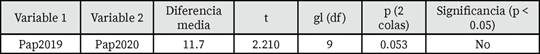 Aunque la reducción no alcanzó significancia estadística al nivel de 0.05, indica una tendencia hacia una disminución en la realización de pruebas de Papanicolaou durante la pandemia.