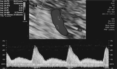 Para el diagnóstico, las velocidades Doppler de arterias uterinas son útiles como herramienta clínica específicamente en el caso de insuficiencia placentaria ya que pueden evaluar simultáneamente la circulación materna, placentaria y fetal. Las arterias uterinas informan sobre la circulación materna, mientras que el Doppler de arterias umbilical y cerebral media brindan información sobre la circulación fetal. Las diversas anomalías Doppler en los vasos descritos que se observan en la RCIU reflejan un incremento de la resistencia en los vasos sanguíneos o un flujo diastólico final ausente y reverso.9