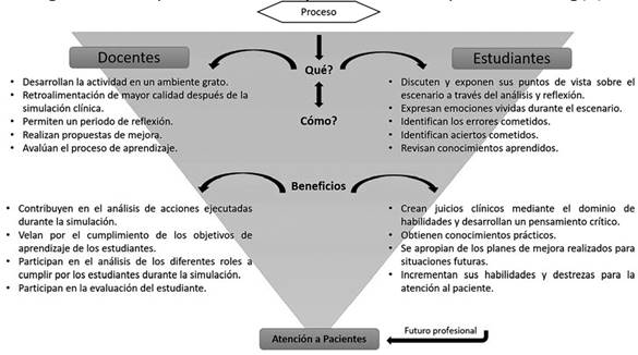 Figura 2: Funciones y beneficios de docentes y estudiantes durante el proceso de Debriefing 17