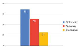 Con el lenguaje sintomático es común el uso de adjetivos calificativos y descriptores de emociones. Por ejemplo, "tiene mala ortografía", "me da rabia que se piense que el maquillaje es sólo para mujeres" son expresiones que pretenden conectar con los receptores de los videos, sea para generar acuerdo o desacuerdo.
