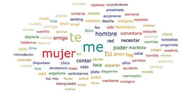 Las palabras qué más se utilizan son mujer, hombre, historia, violencia, red flags y machista, entre otros (ver Figura 5). Las expresiones más comunes son "red flags en mujeres" o "1 de cada 2 mujeres ha sufrido algún tipo de violencia".