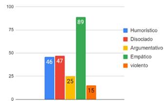Casi todos los videos presentaban comentarios con algún grado de empatia (89%). Las opiniones fueron las más comunes (81 %), seguido de las reflexiones (55%) y las emociones (39%). Las opiniones presentan una posición concreta sobre el contenido que se muestra en el video; las personas están o no de acuerdo con lo enunciado. Es diferente cuando se reflexiona sobre el video, ya que las posiciones de las personas tienen más matices.
