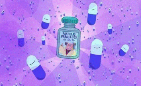Asimismo, una escenografía que resulta de interés es la del anuncio publicitario (figura 10). En esta, se observa, por ejemplo, que el "Dr. NO" -el personaje villano de Ciencia Zapata- promociona una serie de medicamentos placebo para combatir la tos de un pueblo que enferma por las prácticas de la minería a cielo abierto que el mismo personaje instala. En el anuncio se vislumbra un frasco iluminado en el centro de la pantalla, con la cara del doctor en la etiqueta frontal y las píldoras "coristas" que bailan y cantan a su alrededor, con un tono seductor y cautivante, similar a una comedia musical.