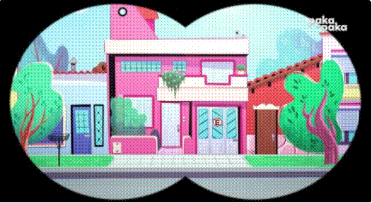 Por su parte, (figura 3) es una animación realizada por Caramba Estudio que tiene a Ariel López en la dirección, a Marilina Sánchez en la producción ejecutiva y a Nicolás Zalcman en el guion. Se trata de una propuesta en la que tres chicos Julia, Teo y Dani conforman un equipo de detectives para investigar los problemas inusuales que algunas especies tienen. Entre ellos, se realzan: los perros, los gatos, los conejos, los hámsteres, las ovejas, los patos, las gallinas, las arañas, los cobayos y los ponys. En la vereda opuesta, un joven con vocación de veterinario los observa con un largavista desde su clínica y, de manera frustrada, intenta develar los misterios que las mascotas exhiben. Parte de su condición de "espía" puede visualizarse mediante el recurso de la ocularización primaria (Gaudreault y Jost, 1985), procedimiento técnico que tiende a caracterizar la relación entre lo que la cámara muestra y aquello que el personaje ve: