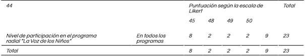 Tabla 2  Nivel de participación de los niños en el programa radial