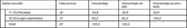 Tabla 4 Evaluación pedagógica de la dimensión saber escribir