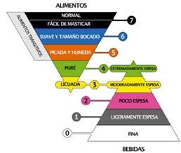 Figura 1 Bipirámide propuesta por el grupo IDDSI para la clasificación de los alimentos y las bebidas según su consistencia