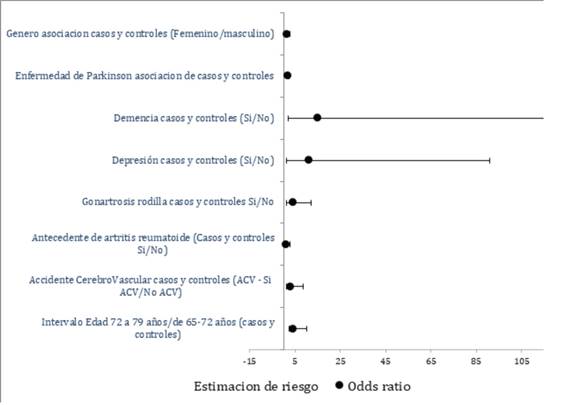 mostraron que el riesgo incrementa con la edad avanzada, mayor comorbilidad (diabetes, Parkinson, demencia), puntaje de Charlson significativamente más alto en el grupo con fractura. Siendo la causa desencadenante más frecuente las caídas.