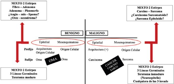 La nomenclatura de las neoplasias requiere distinguir entre dos conceptos clave: origen y estirpe.