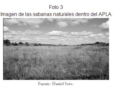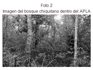 El análisis de imágenes satelitales, información de campo e información secundaria muestra que existen en el APLA tres unidades vegetales claramente definidas: bosque chaqueño transicional, bosque semidecíduo chiquitano y sabanas naturales (Fotografías 1, 2 y 3). De las tres unidades, el bosque chaqueño transicional, que se encuentra al sur del área protegida con un dosel de hasta 12 metros de altura, es el tipo de bosque mejor conservado, con menor intervención sobre todo en el sector suroeste. La unidad del bosque semidecíduo chiquitano con un dosel de hasta 15 metros, ubicado en la zona norte, presenta mayor intervención y amenaza debido a la expansión agrícola-ganadera.