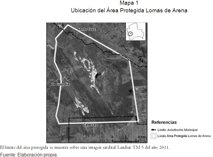 En este artículo se presentan algunos de los resultados de la investigación “Un sistema de monitoreo para áreas protegidas: Estudio de caso Área Protegida Lomas de Arena”, ejecutada en el marco de la “Convocatoria para proyectos de investigación científica y tecnológica para el desarrollo del departamento de Santa Cruz”, iniciativa promovida por el Programa de Investigación Estratégica en Bolivia (PIEB) y la Universidad Autónoma Gabriel René Moreno (UAGRM), en el periodo octubre de 2012 a julio de 2013. El estudio ha sido desarrollado en el Museo de Historia Natural Noel Kempff Mercado (MHNNKM), como Centro de Investigación y extensión de la Facultad de Ciencias Agrícolas en la UAGRM, en coordinación estrecha con el personal del Área Protegida Lomas de Arena, y tuvo como objetivo realizar un análisis de las tendencias de cambio de la cobertura de la tierra y escenarios futuros en el Área Protegida Lomas de Arena y el diseño de un sistema de monitoreo del estado de conservación, dinámica hídrica y de las actividades en el área.
