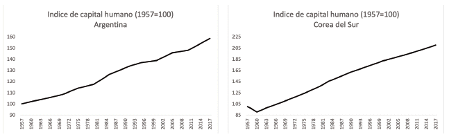 Figura 4. Índice de capital humano entre Corea del Sur y Argentina 1957-2017