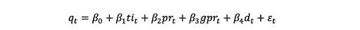 Utilizando letras minúsculas para representar el logaritmo natural de las variables en mayúsculas, la especificación empírica entonces viene dada por (5):