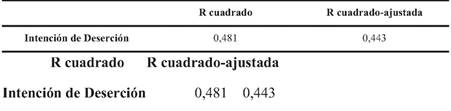 En cuanto al poder predictivo del modelo, el análisis del coeficiente de determinación (R2) arrojó un valor de 0,481 para la variable “Intención de Deserción”, lo que representa una capacidad explicativa moderada según la clasificación de Reyes Aguilar & Bonisoli, (2024). Esto implica que el 48,1 % de la variabilidad de la intención de deserción se explica por los seis factores considerados en el modelo, mientras que el restante 51,9 % podría atribuirse a variables no contempladas en este estudio.