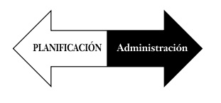 Desde su punto de vista, en el desarrollo de la gestión se veían contrapuestas la administración y la planificación, como se observa en el siguiente esquema: