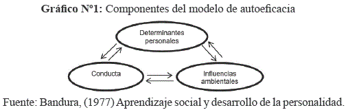 Las bases del modelo de autoeficacia (Bandura, 1977) se dan términos de una triada recíproca, es decir, se describe por medio de tres componentes que operan en interacción unos con otros. Los tres componentes determinantes de acción propuestos por Bandura son: