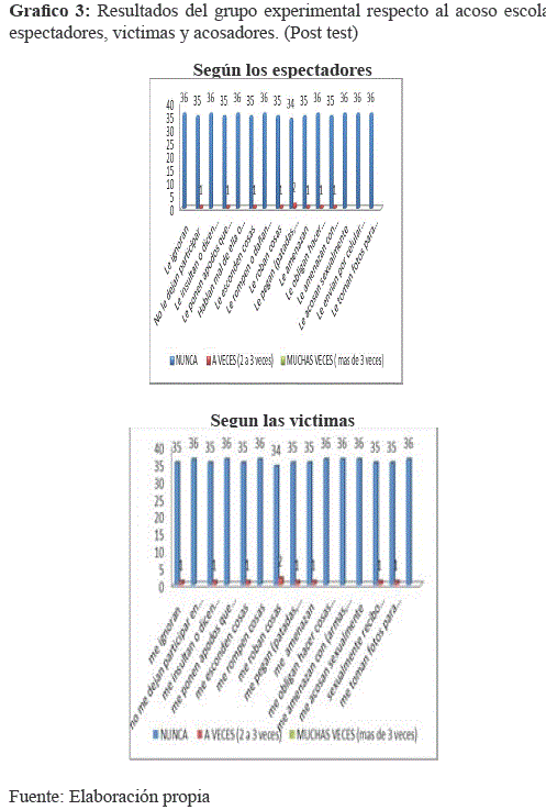 En base a los resultados se observa cambios representativos en el post test ya que el programa de autoeficacia logra prevenir el acoso escolar.